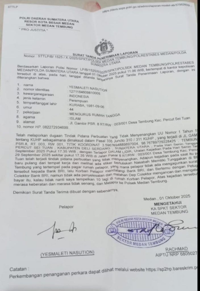 “Tanpa ada surat peringatan, tiba-tiba saya diteror oleh debt collector yang mengancam dengan kata-kata kasar hampir setiap hari. Bahkan stiker yang menuduh saya memiliki tunggakan dipasang di rumah saya. Ini jelas melampaui batas!” ungkap Desmaleti, menunjukkan betapa dirinya diteror dengan cara yang sangat tidak manusiawi.