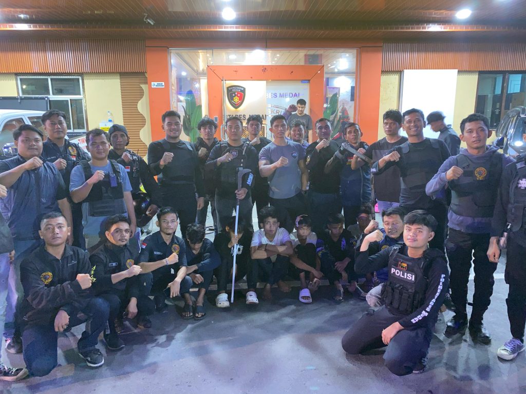 Tim Reaksi Cepat Kota Medan Bersama JCS Polrestabes Medan Berhasil Mengamankan 6 Orang Geng Motor Yang Bernama “All Star News Original” Di Jalan Gurila Medan, Senin (12/1/2025).