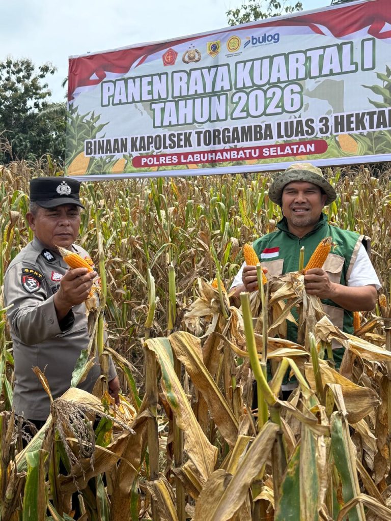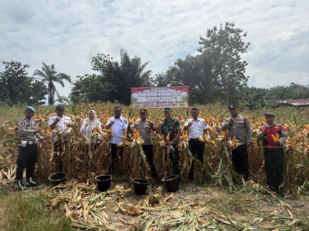 Dalam rangka mendukung program pemerintah mewujudkan swasembada pangan nasional, Polsek Torgamba Polres Labuhanbatu Selatan melaksanakan kegiatan Panen Serentak Kuartal I Tahun 2026 di lahan binaan Kapolsek Torgamba, Rabu (4/2/2026).