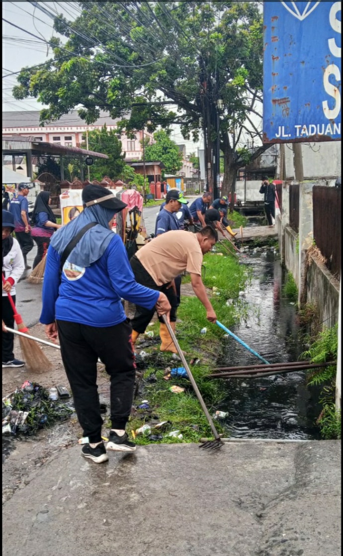 MEDAN, sumutbrantas.id — Pemerintah Kecamatan Medan Tembung kembali menggelar kegiatan gotong royong lintas lingkungan pada Jumat (17/4/2026).