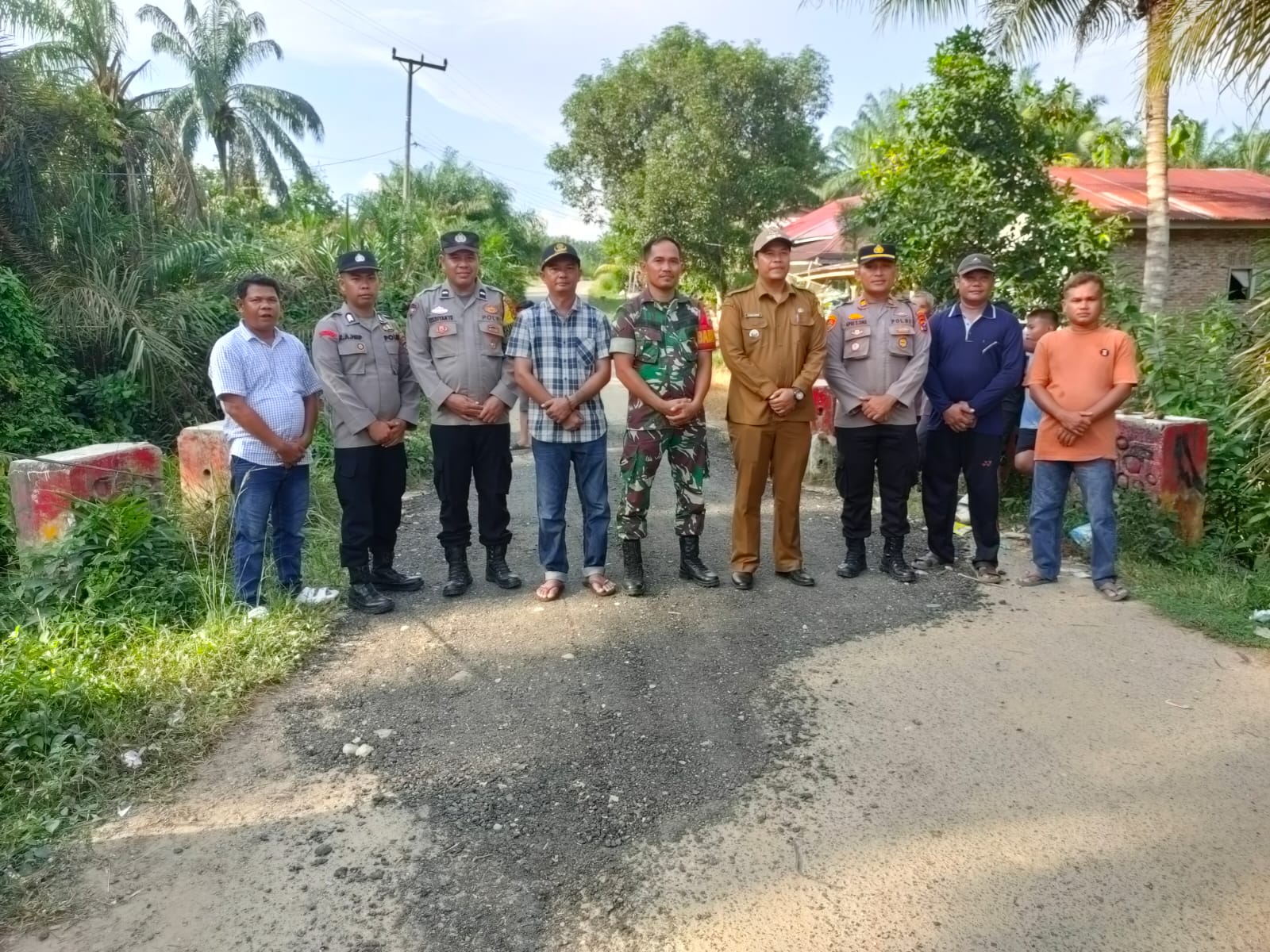 Dalam kegiatan itu, dilakukan penimbunan material batu aspal pada bagian jembatan yang mengalami penurunan, pengecekan kondisi fisik jembatan, serta koordinasi dengan perangkat desa guna memastikan keberlanjutan fungsi infrastruktur tersebut.